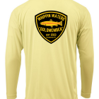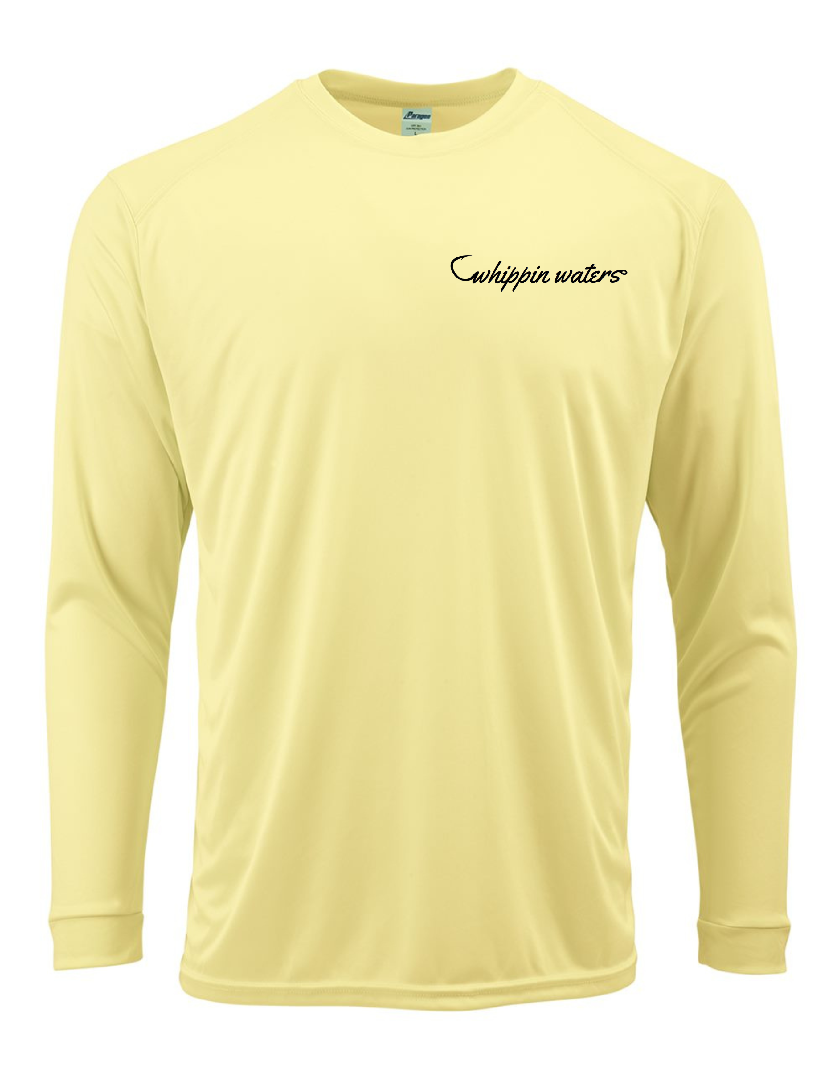 Long Sleeve Performance Polyester shirt. The shirt has graphics that are sublimated which impregnates the design into the fabric of the shirt, it will not lift, crack or dull from washing alone. These shirts provide SPF 50 and are lightweight and breathable and comfortable.