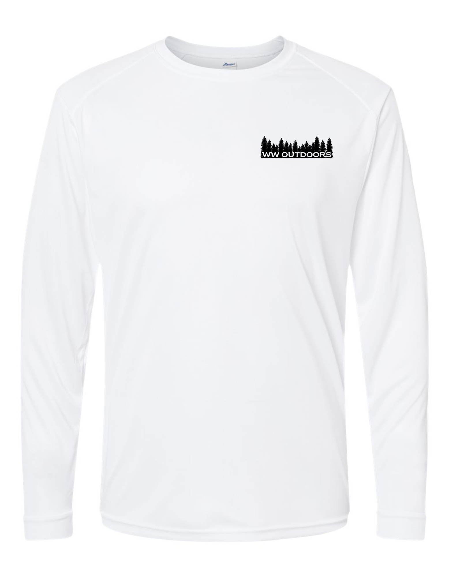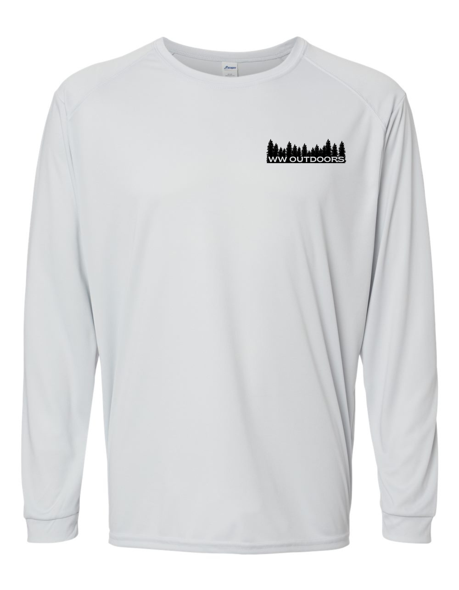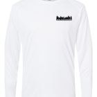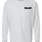 Long Sleeve Performance Polyester shirt. The shirt has graphics that are sublimated which impregnates the design into the fabric of the shirt, it will not lift, crack or dull from washing alone. These shirts provide SPF 50 and are lightweight and breathable and comfortable.